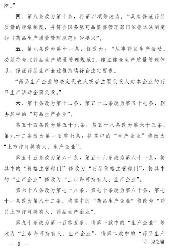 2018年9月,市场监管总局向国务院报送了《中华人民共和国药品管理法修正案(草案送审稿)》。送审稿围绕问题疫苗案件暴露的突出问题,对药品监管制度作了完善,同时为了落实2017年10月中共中央办公厅、国务院办公厅《关于深化审评审批制度改革鼓励药品医疗器械创新的意见》(以下简称《创新意见》)提出的“及时总结药品上市许可持有人制度试点经验,推动修订药品管理法,力争早日在全国推开”的要求,对药品上市许可持有人制度作了规定。收到此件后,司法部立即征求有关部门、地方政府和部分药品生产企业意见,会同市场监管总局、药监局等部门对送审稿反复研究协调修改,形成了《中华人民共和国药品管理法(修正草案)》(以下简称草案)。草案已经国务院同意。现说明如下: