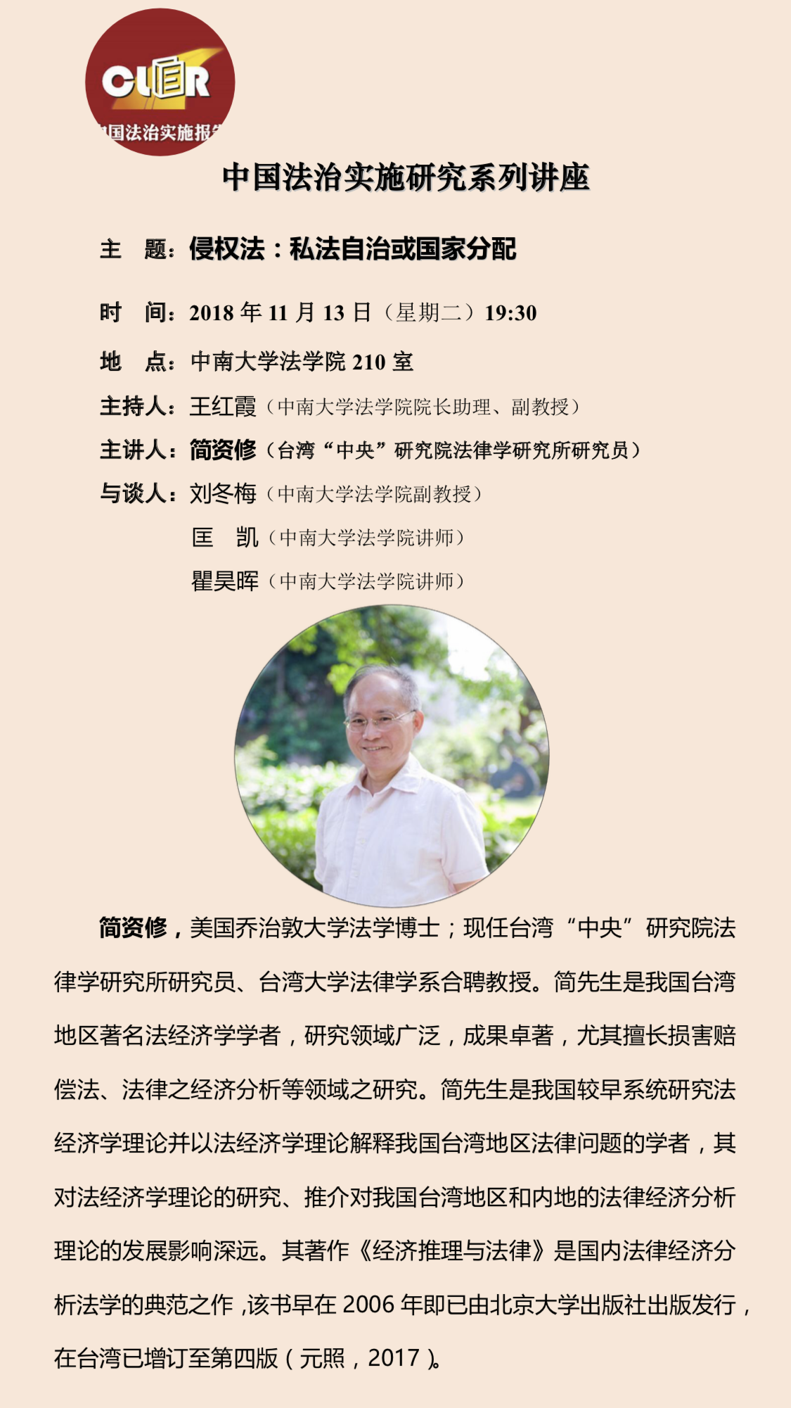 【中国法治实施研究系列讲座】简资修:侵权法:私法自治或国家分配