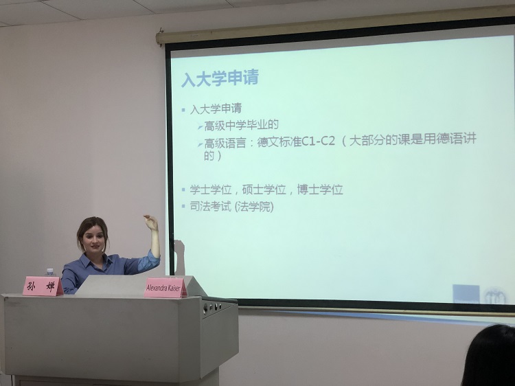 Alexandra Kaiser的讲座详细地阐述了德国法学教育的内涵,对申请德国留学的同学提出了很有价值的建议,解答了同学们的困惑,让在座的同学们受益颇丰,增进了同学们对德国法学教育的认识与理解。