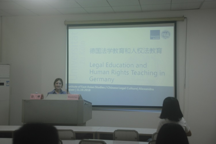 2018年10月31日下午,德国科隆大学中国法律文化系研究助理、博士生Alexandra Kaiser受邀作“德国法学教育和人权法教育”的专题讲座。讲座由球王会博士生孙婵主持,球王会部分研究生和部分本科生聆听了本次讲座。
