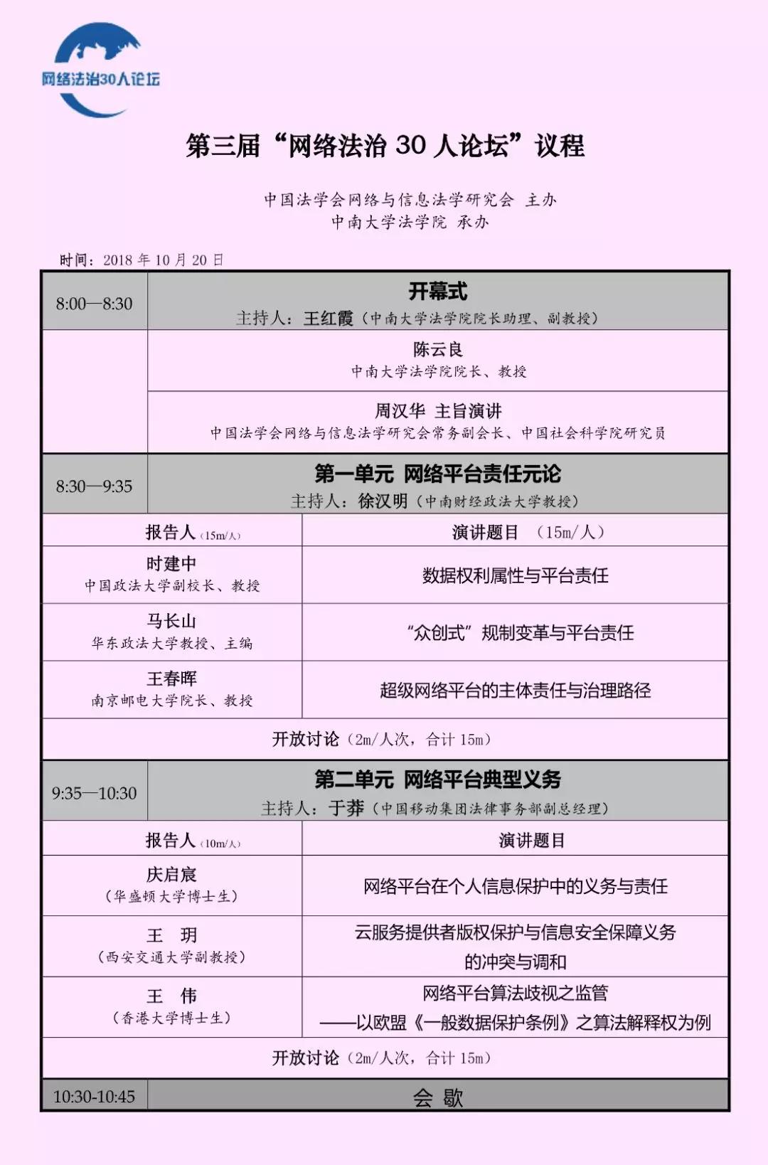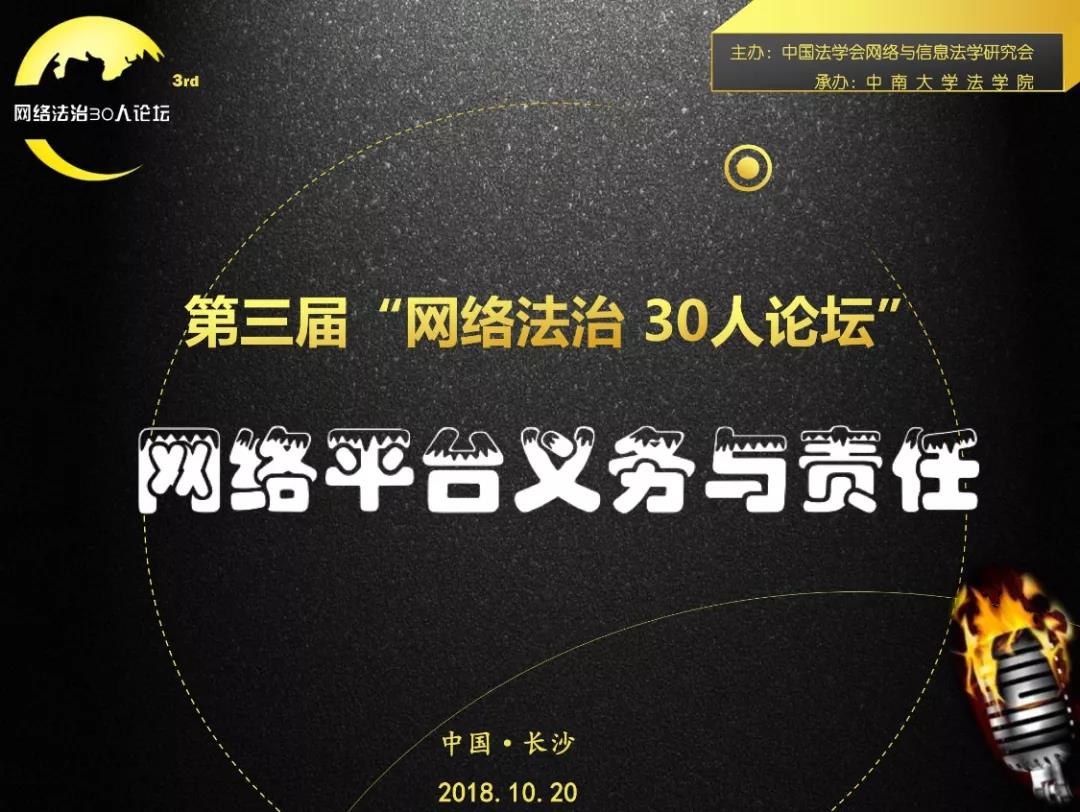 2018年10月20日,第三届“网络法治30人论坛”在长沙隆重召开。本届论坛由中国法学会网络与信息法学研究会主办,“网络法治研究方阵单位”球王会承办。来自50多家科研机构,10余家典范通信与网络平台,以及中央网信办、中国电子商务协会等政府和社会组织的百余位学术和实务精英出席会议。