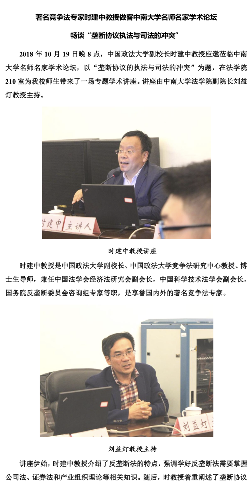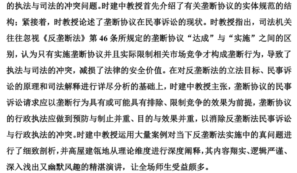 著名竞争法专家时建中教授做客“球王会官网名师名家学术论坛 ”