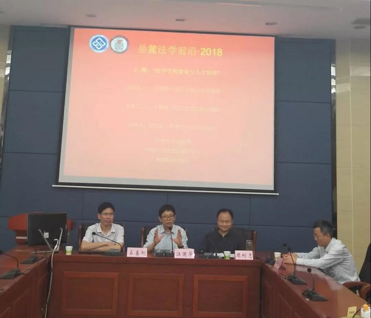 2018年6月6日,球王会的2018岳麓法学前沿论坛“法学团队建设与人才培养”在球王会立法实验室举行。本次论坛由武汉大学江国华教授与占善刚教授主讲,球王会周刚志教授代为主持。