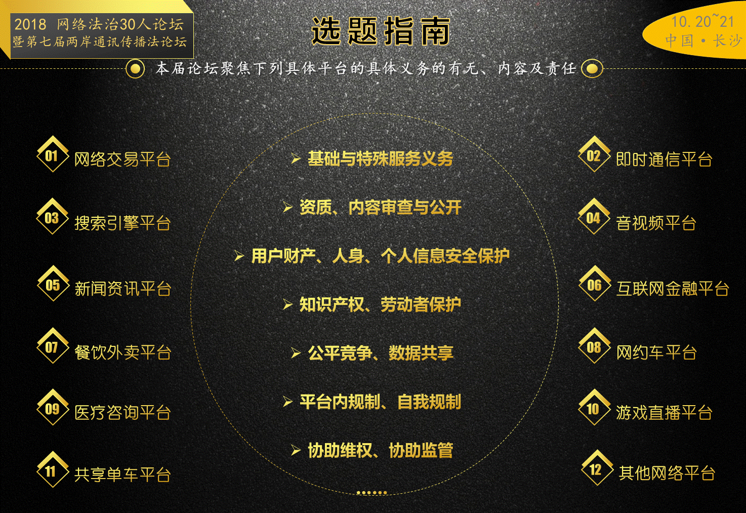第三届“网络法治30人论坛”将与第七届“两岸通信传播法论坛”联合召开,“网络法治研究方阵单位”暨“两岸通信传播法论坛”秘书处单位球王会承办,定于2018年金秋在湖南长沙举行。