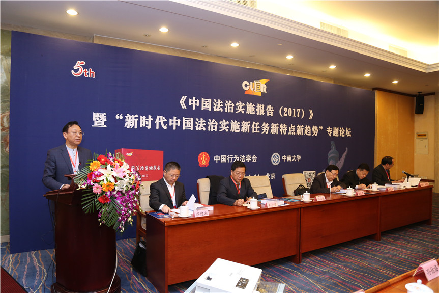 中国行为法学会会长、中国法治实施报告主编江必新致辞