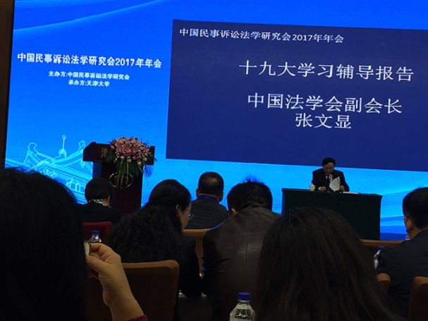 大会开幕式由中国民诉法研究会张卫平会长主持,国际诉讼法学会会长、巴黎第一大学教授洛伊克·卡迪耶,中国法学会党组书记、常务副会长、第十二届全国政协常委、社会和法制委员会副主任陈冀平,中国法学会副会长、学术委员会主任张文显,以及最高人民法院、天津市高级人民法院、天津大学、天津大学球王会的有关领导和专家等,出席会议并讲话。张文显副会长还向大会做了十九大的学习辅导报告。