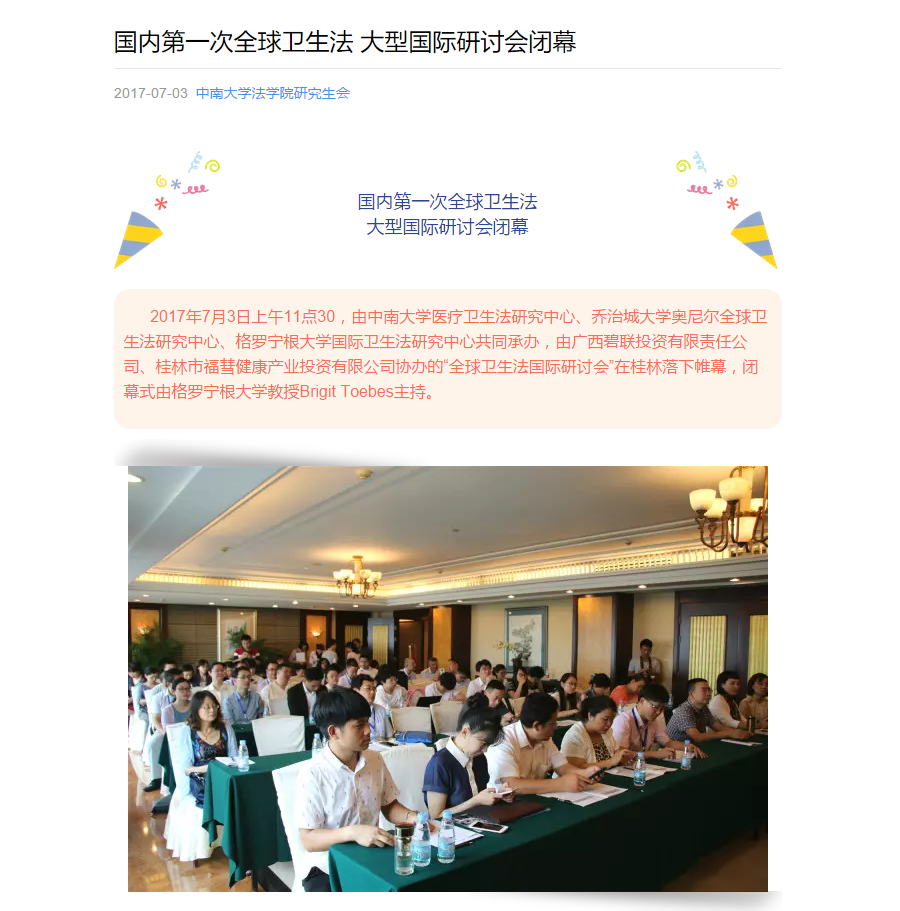 国内第一次全球卫生法 大型国际研讨会闭幕