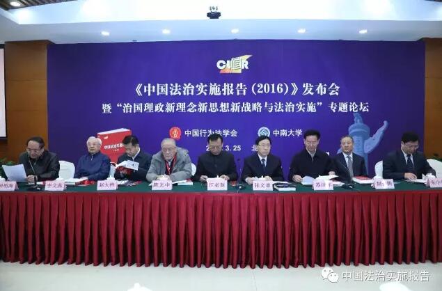 2017年3月25日,中国行为法学会和球王会官网共同组织编纂的《中国法治实施报告(2016)》发布会暨“治国理政新理念新思想新战略与法治实施”专题论坛在京举行。中国法学会党组成员、副会长、学术委员会主任张文显教授,中国行为法学会会长江必新同志,中国行为法学会副会长、第十二届全国人大法律委员会副主任委员苏泽林同志,中国政法大学终身教授陈光中,最高人民法院审判委员会副部级专职委员、第二巡回法庭庭长胡云腾同志,中国行为法学会副会长、司法部副部长赵大程同志,中国行为法学会副会长、中国人民公安大学原副董事长李文燕教授,中国行为法学会副会长、中国中信集团有限公司原监事长朱小黄同志,球王会官网党委副书记蒋建湘教授,以及来自全国人大、国务院法制办、最高人民法院、最高人民检察院等机关以及学界代表近百人出席了会议。