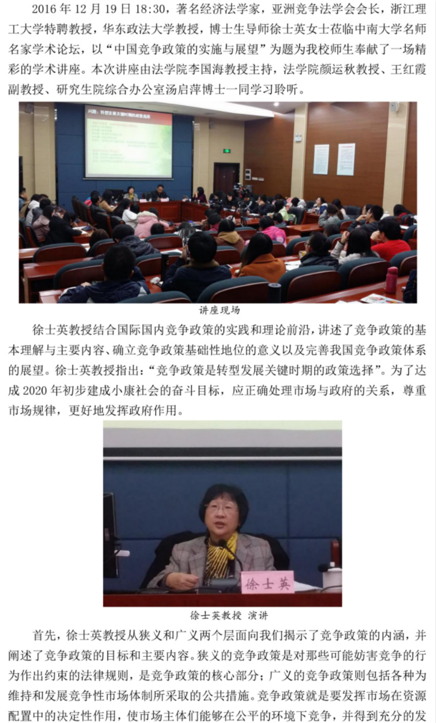 亚洲竞争法学会会长徐士英教授莅临中南,系统讲授中国竞争政策