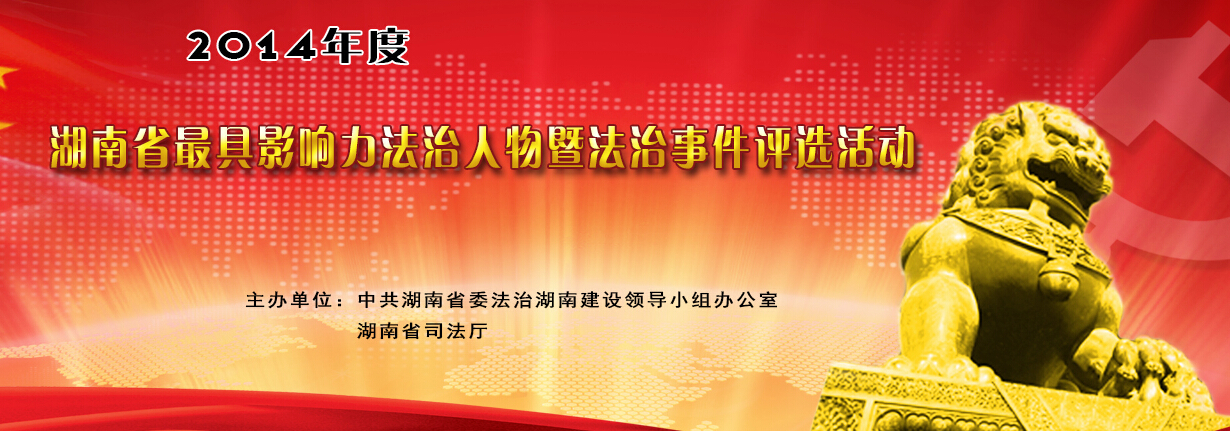 为认真贯彻落实党的十八届三中、四中全会和守盛书记“12.4”首个宪法日讲话精神,深入推进“六五”普法规划全面实施,弘扬法治精神,提高全民法治意识和法治观念,促进法治湖南建设,根据我省开展“12.4”首个国家宪法日系列宣传活动的统一部署,省委法治湖南建设领导小组办公室(以下简称省委法治办)、湖南省司法厅决定组织开展2014年度“湖南省最具影响力法治人物暨法治事件”评选活动。
