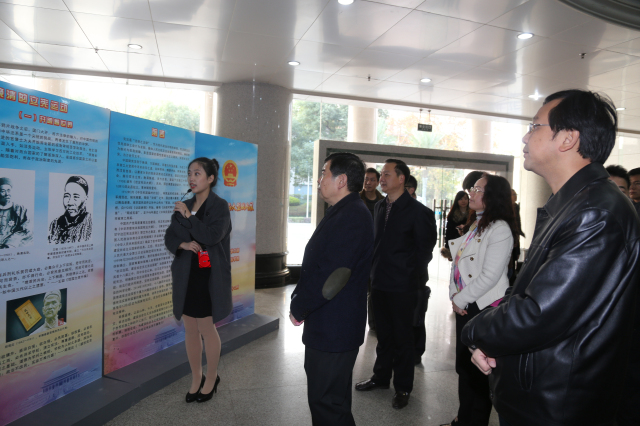 启动仪式结束后,讲解员给领导及师生们介绍了宪法之路大型图片展。此次图片展以图文并茂的方式介绍了我国的宪法之路,包括四部分:晚清的立宪运动,民国立宪的曲折过程,红色革命政权的宪法探索及建国后的宪法发展过程。参观完图片展后,高文兵书记对此次活动的策划与组织给予了高度肯定。随后,高书记进一步了解了公司“法治梦·中国梦”系列活动的筹备工作和活动进展情况。