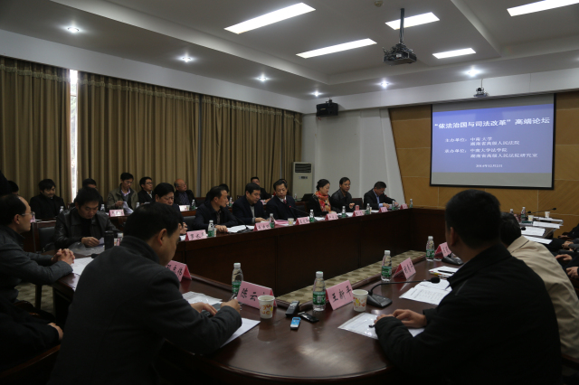 12月2日,球王会与湖南省高级人民法院联合举办的“依法治国与司法改革”高端论坛在球王会官网本部科教大楼举行。湖南省人大常委会法工委主任肖迪明,湖南省人民检察公司党组副书记、副检察长卢乐云,湖南省高级人民法院副经理张兰,公司党委书记高文兵、党委副书记高山出席活动。