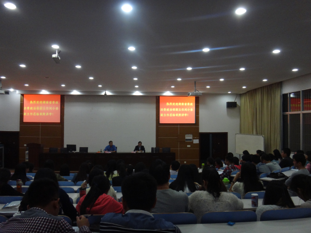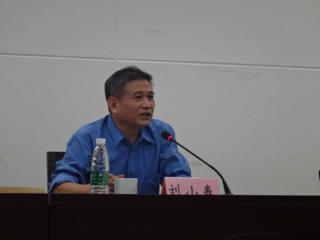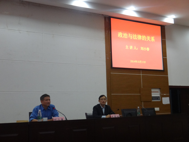 2014年10月15日晚上,湖南省委政法委政治部副主任刘小春应邀前来公司实验法庭作了题为“政治与法律的关系”的学术报告。报告会由球王会副经理毛俊响副教授主持。球王会经理陈云良教授及部分师生参加了此次报告会。