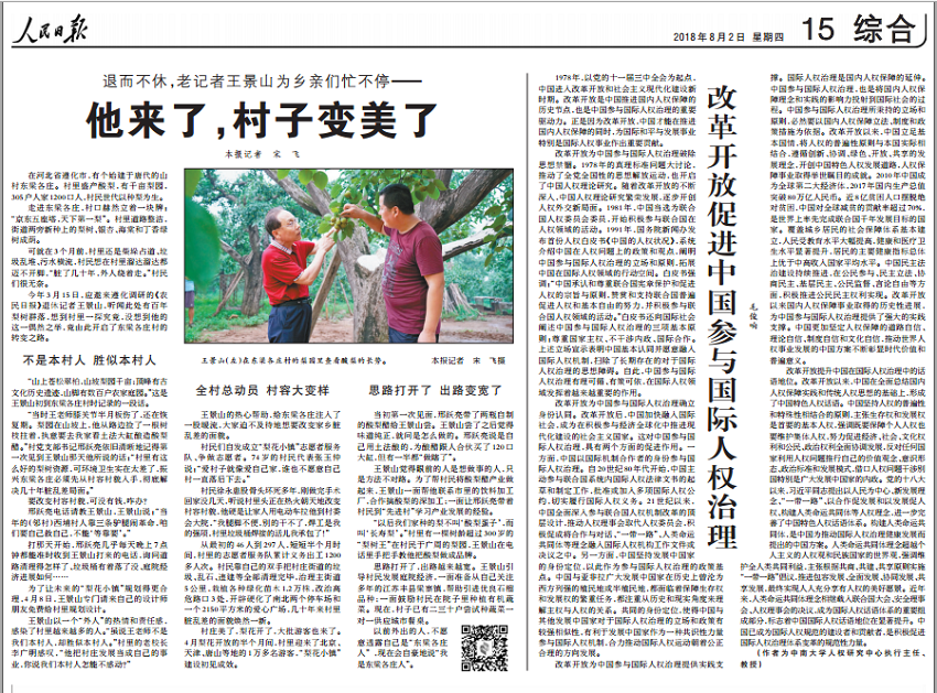 毛俊响教授在《人民日报》2018年08月02日第15版发表《改革开放促进中国参与国际人权治理》一文