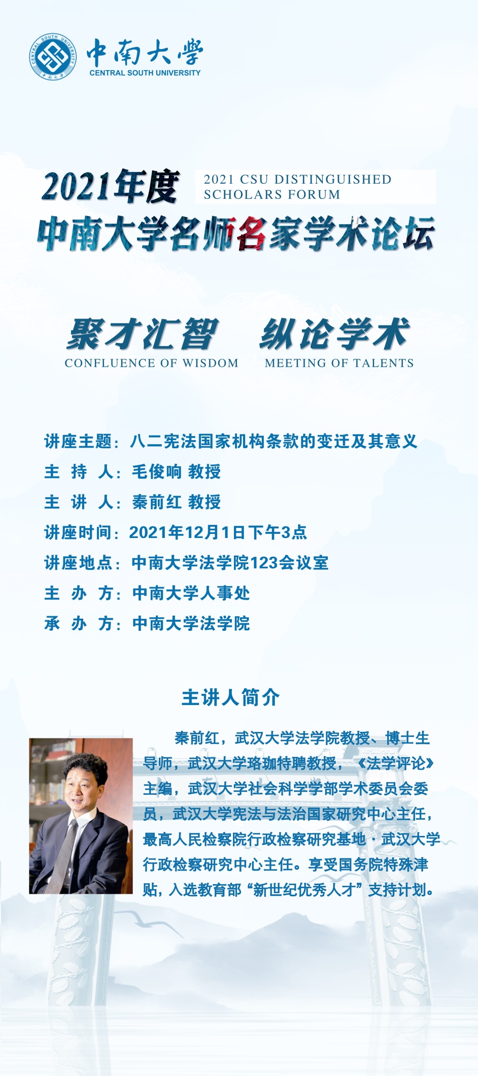 【名师名家讲座预告】秦前红:八二宪法国家机构条款的变迁及其意义