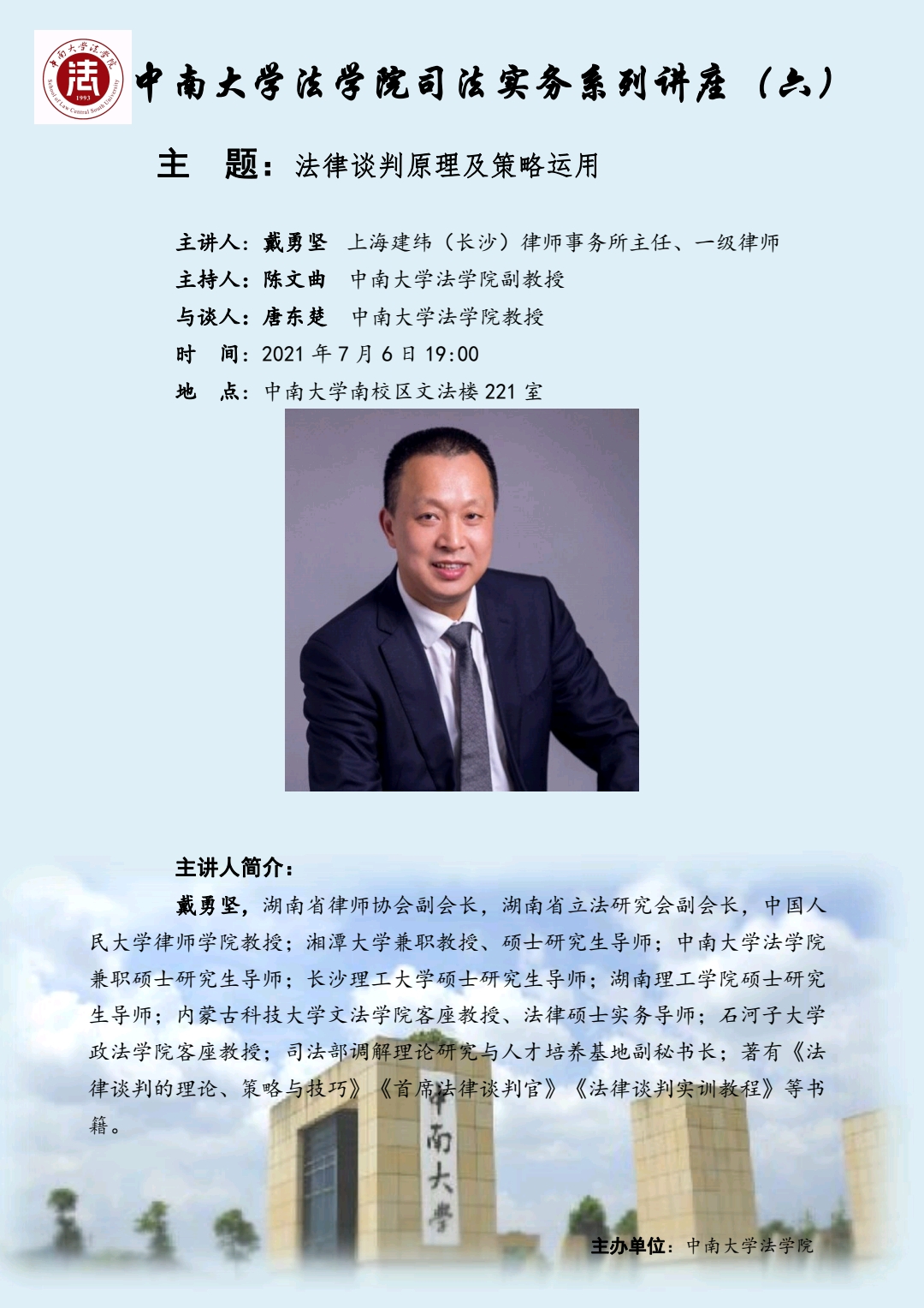 【讲座预告】戴勇坚:法律谈判原理及策略运用