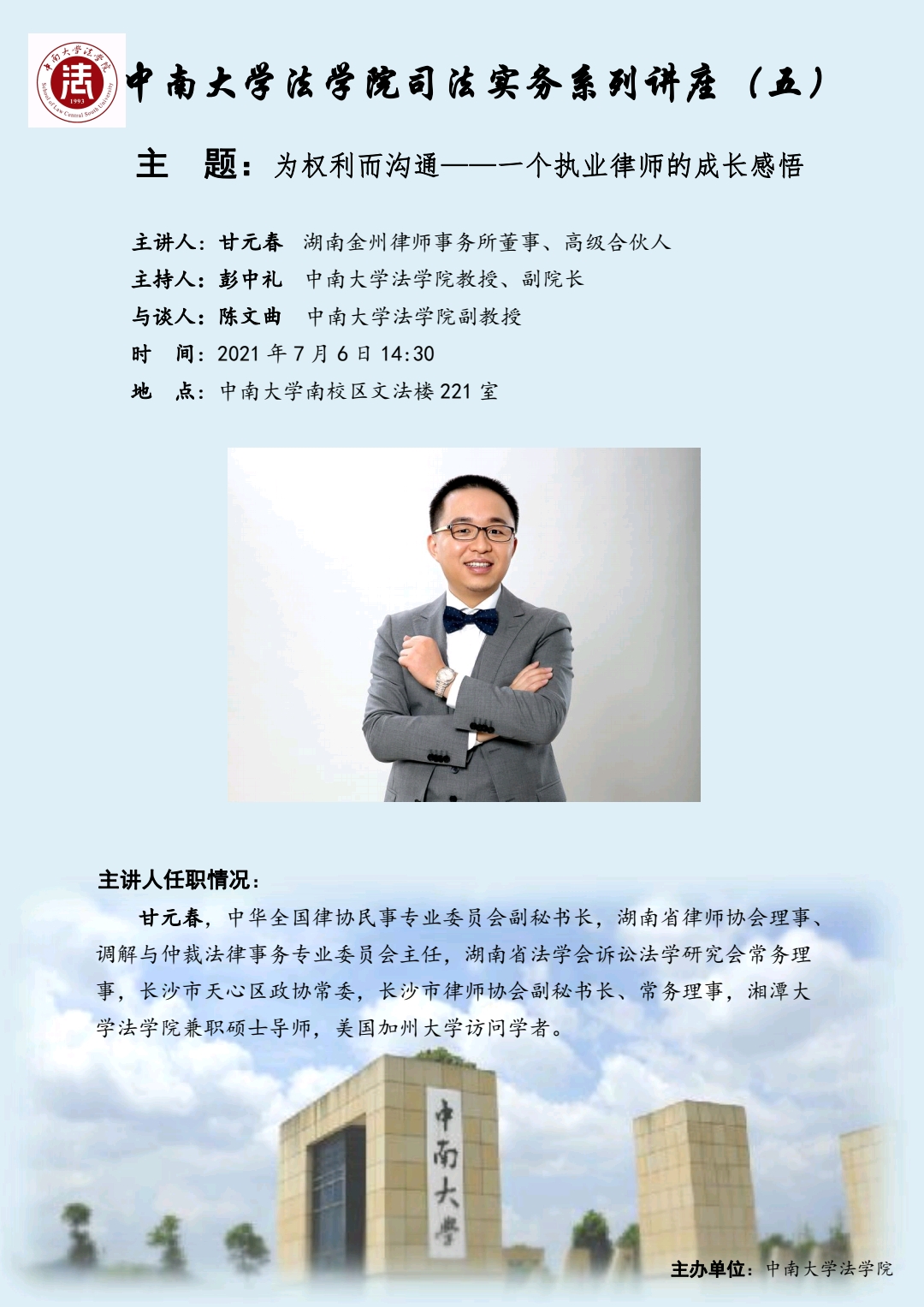 【讲座预告】甘元春:为权利而沟通——一个执业律师的成长感悟