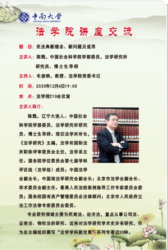 【讲座预告】陈甦:民法典新理念、新问题及适用