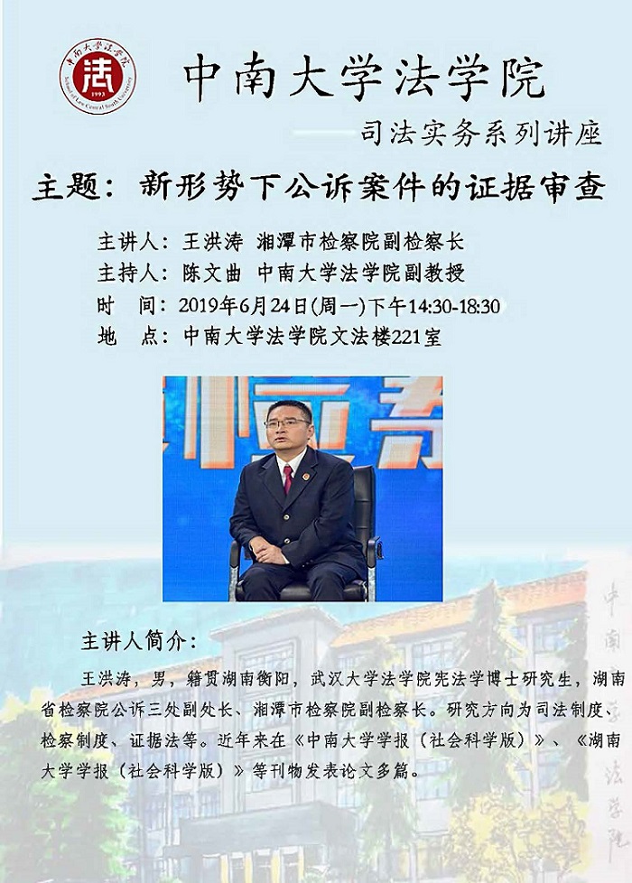 【讲座预告】王洪涛:新形势下公诉案件的证据审查
