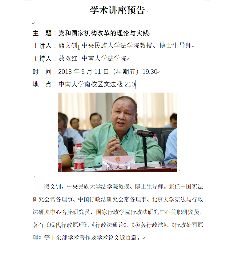 报告题目:党和国家机构改革的理论与实践
