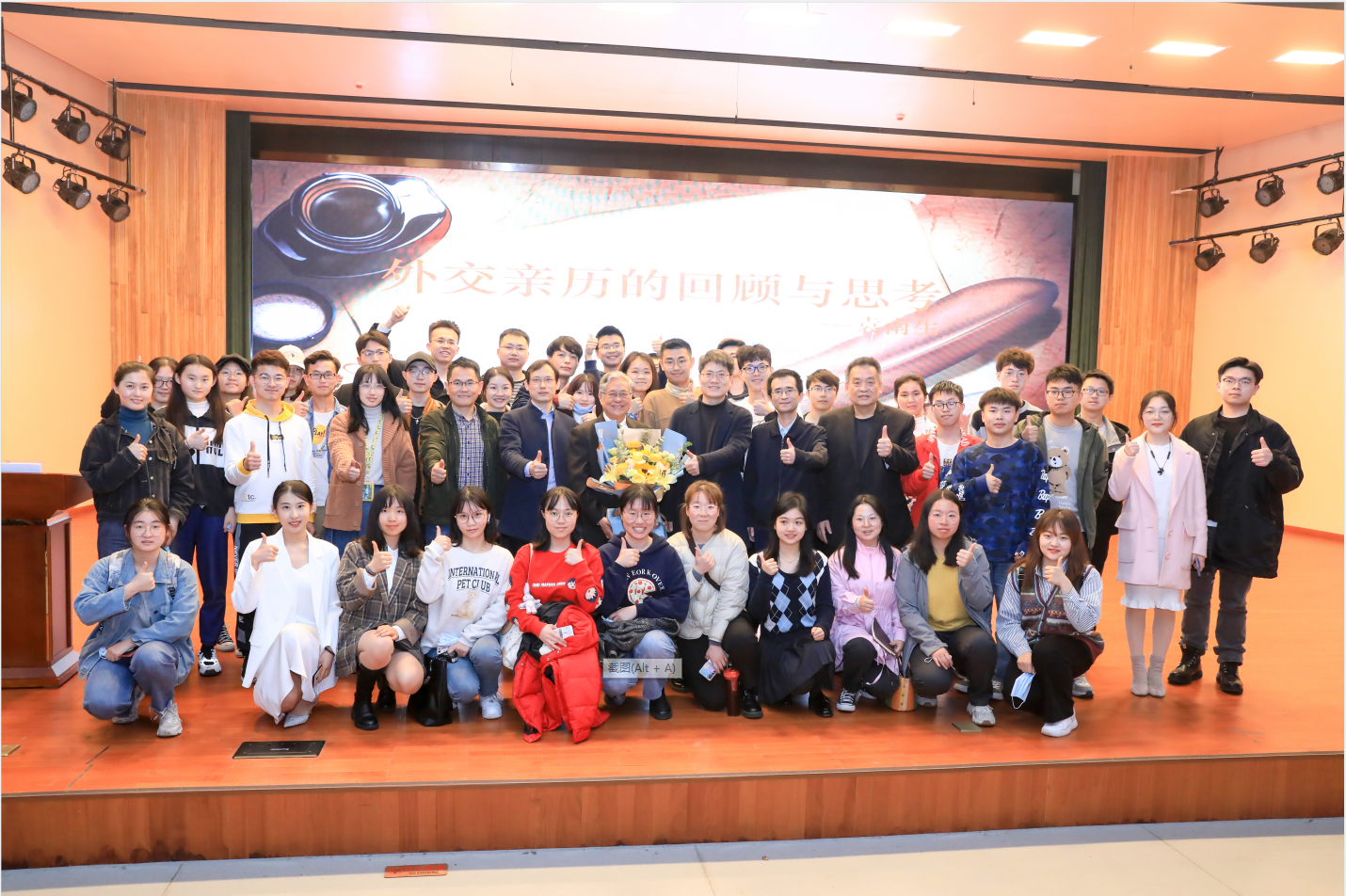 在讲座交流提问环节,袁教授回应了大家都比较关心的中美关系问题,他认为中美关系将长期存在不稳定性,中国与西方的关系也将会变得更加微妙敏感。现场气氛热烈,袁教授耐心回答每位同学的疑问,和蔼可亲、思维敏捷的外交大使形象得到在座同学的阵阵掌声与赞扬!讲座最后,袁教授与受邀嘉宾及员工代表共同合影留恋。至此,本次讲座圆满结束。