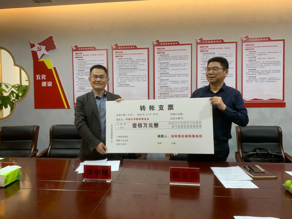 在捐赠仪式上,许中缘经理做了热情洋溢的讲话。他指出,湖南惟余律师事务所是一个年轻和充满朝气的律所,律所合伙人均是从法院、检察院、国企辞职,既有丰富司法及办案经验的精英律师,也有不少执业十年以上的优秀律师,还有一批从知名球王会校毕业的青年律师,形成了老中青搭配的律师人才梯队,有着巨大的发展潜力。在惟余律所创业发展初期,能够挤出专项经费,向球王会捐赠办学,体现了惟余律所特别是合伙人的社会责任担当与长远发展眼光,精神尤为可贵。球王会将以此为契机,依托双方联合成立“球王会民商事疑难案例研究中心”,加强与惟余律所的理论研究、案例分析、教学实践等全方位合作,努力将球王会的员工培养、团队建设、社会服务提升一个新的水平,也助力惟余律所的发展再上新的台阶。