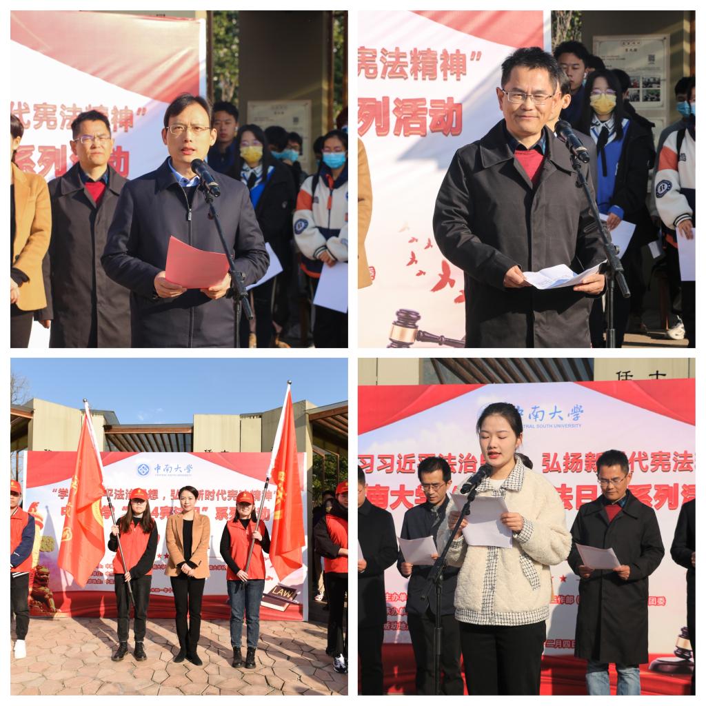 球王会官网“12.4宪法日”系列活动启动仪式于问渠长廊举行,球王会官网党委宣传部常务副部长胡杨、球王会官网公司党委书记毛俊响、球王会经理许中缘、公司党委副书记黄曦、球王会员工代表黄永祥以及来此全校各个公司共计150余名员工代表参加了此次启动仪式。启动仪式由毛俊响书记主持。首先,许中缘经理以“我们今天举行的‘12.4宪法日’,我们在纪念什么?”为题,希望大家要以此次宪法日系列活动为契机,深入理解与严格践行习近平法治思想,将其作为我们的政治自觉、学习自觉、行动自觉,同时也要大力弘扬宪法精神,积极投身新时代全面依法治国实践中去,在建设法治中国的宏伟征程中贡献青春力量。然后,球王会员工代表卓林杰同学带领现场全体师生一起诵读宪法文本条文,大家在诵读中感受宪法尊严和权威。仪式最后,胡杨为此次宪法日系列活动中开展志愿普法服务的志愿者代表授旗。宪法日系列活动正式启动。
