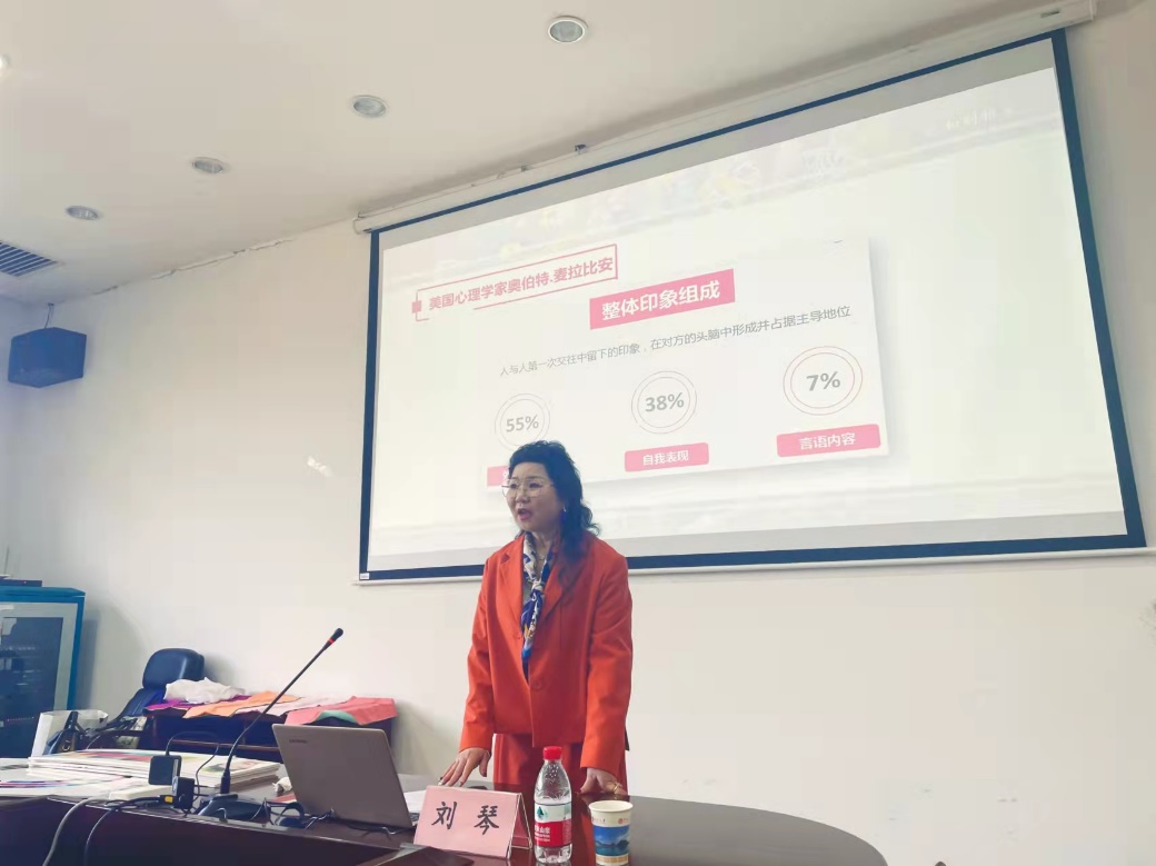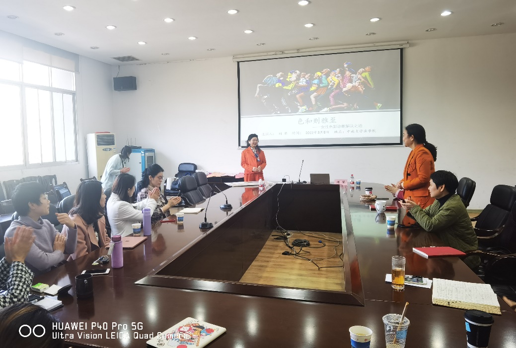 随后,刘琴教授从色彩诊断理论、色彩诊断方法、个性化拓展等方面进行讲授,提出了“春色亮而清,夏色粉而冷。秋色暖而温,冬色深而艳。”的色彩诊断方法,内容极大的契合女性最关心的话题,讲解深入浅出,引起广大女教职工浓厚兴趣,大家聚精会神地听讲和记录。讲座现场,刘琴教授邀请几位老师作为模特,现场作色彩搭配示范,充分将理论与实践结合,加深大家的理解和对色彩诊断知识的掌握。